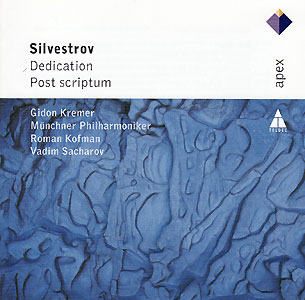 Price (incl. 19% VAT): €13.00 More Info"Valentin Silvestrov (b. 1937) has only come into his own only since the late 1970s. Before then, his music tended to follow in the wake of Shostakovich and Schnittke. His true voice emerged with Symphony No. 5 (1980-81). And it's here, in full measure, in Dedication: Symphony for Violin and Orchestra, a 1990-91 work for Gidon Kremer, the soloist here. Silvestrov, like Schnittke, is a polystylist; but unlike Schnittke, he keeps a constant tonal undercurrent beneath the more overt language of the orchestra which can be, at any time, tonal, atonal, serial, or anarchic. It's quite hypnotizing. Check this guy out." [Paul Cook] |