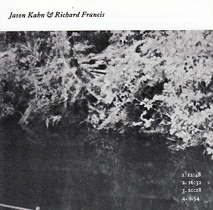 Price (incl. 19% VAT): €13.00 More Info"Just how many CDs did Jason Kahn release by now? Hard to say, but quite a fair bunch. He doesn't surprise me with his music that much anymore, but that has nothing to do with the quality of the music as such. Here he teams up with Richard Francis, once known as Eso Steel and running the CMR label, and these working under his own name. The two met for the first time in Auckland where they played together and then, a year later, again in Switzerland. Kahn plays percussion and analogue synthesizer, while Francis is on computer and electronics. Four pieces (between ten and sixteen minutes each) of great lo-fi humming sounds. A very special kind of drone music that sounds both electronic and acoustic. It seems to me that these are microphone recordings, which capture the atmosphere from the space they play their music in, and which adds a nice textured quality to the music. Minimalist in approach, but very fine in execution. Like said, Kahn doesn't surprise me with his music, but he sure knows how to please me." [FdW / Vital Weekly]"The new album from two masters of electroacoustic improvisation, who are living thousands miles away from each other, but found some common aesthetic views and originality of artistic expression. This materials were recorded live during their collaborative performances in various locations, consisting of four long tracks, presenting the unique interaction between technology and intuition. BIOGRAPHICAL NOTES: Jason Kahn's work includes sound installation, performance and composition. He was born in New York in 1960, grew up in Los Angeles and relocated to Europe in 1990. He currently lives in Zürich. He has given concerts and exhibited sound installations throughout Europe, North and South America, Japan, Mexico, Korea, Israel, Turkey, Russia, Lebanon, Egypt, Hong Kong, New Zealand and Australia. Kahn performs both solo and in collaborations, using percussion, analog synthesizer or computer in different combinations. He composes for electronics, acoustic instruments and environmental recordings. For larger groups of directed improvisation he has devised a system of graphical scores. Kahn creates his sound installations for specific spaces. The focus of these primarily non-visual works lies in the perception of space through sound. Richard Francis has been releasing works on CD/vinyl, performing solo and in collaboration as a touring artist since 1996. He uses field recordings of natural and electronic sounds and a signal generator to compose layered sound works of textural and tonal detail. He has released solo and collaborative works on a number of labels worldwide and runs his own label CMR through which he currently releases limited edition lathe cut records by New Zealand artists. In performance he uses a computer and electronics and has toured Japan, Australia, Hong Kong, Canada, USA and Europe. Since 2003, Francis has composed works for sound installation, participating in group and solo shows at galleries throughout New Zealand. Jason Kahn: percussion, analogue syntesizer Richard Francis: computer, electronics First two tracks recorded live at Gus Fisher Gallery, Oakland on 22nd September 2007, third one - on 17th June 2008 at Werkstatt für Improvisierte Musik, Zürich, and the last one - at Le 102, Grenoble, on 19th June 2008." [label info] www.monochromevision.ru |
