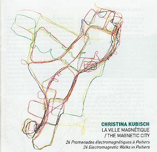 Price (incl. 19% VAT): €15.00 More Info"24 Electromagnetic Walks in Poitiers. Produced at Studio Hoppegarten and Electronic Music Studio of the Technical University Berlin, October-November 2008. Liner notes and other info in French and English. The recordings of the 24 Electromagnetic Walks in Poitiers were made on August 14, 18 and 19 2008, using only Christina Kubisch's electromagnetic induction headphones and a portable recorder. The sounds have not been electronically modified. The only intervention was the use of a frequency filter. From the linernotes: Today there is a lot of interest in the musical world in 'mapping', the art of tracing the world we live in by means of maps which differ from those made for trade, commerce and business. The maps of the 24 Electromagnetic walks are visual and musical ones. 24 volunteers explored the hidden electromagnetic fields of Poitiers wearing a special headphone created by the artist. This wireless 'tool' captures and amplifies the magnetic fields above and underground the city. The visitors were free to choose their own, personal paths (itineraries) and were asked to draw them upon a map of the inner city. The length of the recordings vary between 6 and 79 minutes. Every recording is a kind of 'mirror' of the character and personality of the walker. Some people walked straight and without stopping through the streets, others often stopped and played around by moving their head (or body) when entering an interesting field, some followed the 'historical paths', others used the personal itineraries of their daily life, some just went by chance and took the exploration as a kind of acoustic adventure. The collection of 24 sound channels in Poiters is a collection of electromagnetic field recordings- an electromagnetic portrait of the city. Often what you can see normally and what you hear electromagnetically, is quite different: quiet streets burst out with strong electrical hums, the lively market place is quiet instead, the train station is a dense net of regular beats and clicks, the parking Carnot is the place where antennas fill the air with internet signals, the ATM machines of the banks hum musical chords and the security gates in the shopping streets surprise by their volume and intensity of continuous signals. The juxtaposition of the 24 itineraries was the starting point for he composition. Several times the visitors were at the same time at the same place, but exploring the sounds in different ways. The piece is a mix of all the recordings, sometimes letting them together in big clusters, sometimes following an individual walker along his way. The beginning and the end of the recordings was the tourist information center of Poitiers. The voices and the music which can be heard were recorded not with a microphone but as well through electromagnetic induction: a cable loop inside the office makes the sound audible as well outside the building. It's here, where the information of the historical city meets with the contemporary hidden electromagnetic world of Poitiers. The participants to the recorded walks: Jean-Pierre Courjaud, Quentin Debenest, Jean Hiernard, Daniel Clauzier, Emmanuelle Baud, Claude Thibault, Marion Berthier, Marie Fournier, Jean-Pierre Potier, Benoist Baillergeau, Jean-Luc Terradillos, Dominique Truco, Patrick Treguer, Jean-Christophe Desnoux, Dominique Pichon, Thomas Sillard, Marion Valière Loudiyi, Mélanie Ribot, Nicolas Bernard, Aurélien large, Marine Antony, Lilian Gerling, Anne Gérard, Christina Kubisch. Credits: Artwork By [Cover Design] - Christina Kubisch. Artwork By [Graphics] - Frederic Briand. Engineer, Mastered By - Eckehard Güther. Liner Notes - Christina Kubisch. Mixed By - Christina Kubisch. Photography - Christina Kubisch , Daniel Proux , Dominique Truco , Marion Valière-Loudiyi. Technician [Recording Assistance] - Marine Antony.' [full label info / liner notes] |