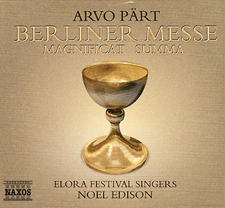 Price (incl. 19% VAT): €13.00 More Info"With a number of modern classics already to his name, notably the Symphony No. 3 [Naxos 8.554591], Tabula Rasa [8.554591], Fratres and Cantus in memoriam Benjamin Britten [8.553750], culminating in 1982 with his largest work thus far, the St John Passion [8.555860], Arvo Pärt has during the past 20 years consolidated his reputation as one of the most significant composers at work today with a sequence of magnificent sacred choral works. The present recording provides an overview of Pärt’s mature idiom with works written on either side of the Passion, and in which a gradual expressive opening-out and harmonic enrichment of the composer’s musical vocabulary can be detected. The Magnificat is perhaps Pärt’s most immediately appealing choral work whose alternation of solo and tutti sections imparts a powerful spiritual aura." [label info]www.naxos.com |