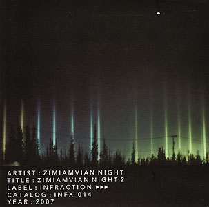 Price (incl. 19% VAT): €13.50 More Info"Mike Bennett's guitar-based ambient drone is draped across sounds created on the other side of the world. Using New Zealander Christopher Orczy's harmonium works from his October release as a basis, Bennett recreates an entirely new majestic work. The result is a chilly, nearly mournful depiction of the sound of northern lights as they ascend and fall in the night sky. Bennett previously released his debut, Zimiamvian Night 1 on Infraction Records in 2005. It was a dark cavernous foray into Zoviet-style old-school ambient with tape loops and guitar-based drone. This new work is a leap forward in texture and atmosphere two years in the making." [label info]www.infractionrecords.com |