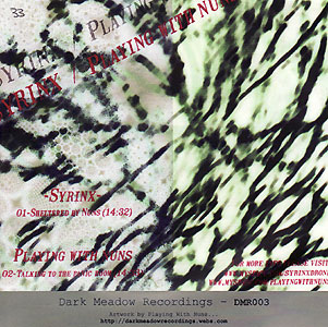 Format: maxi-CDR Label & Cat.Number: Dark Meadow Recordings DMR003 Release Year: 2010 Note: each one long track by UKs wonder-drone trio SYRINX (excellent track) and PLAYING WITH NUNS from Argentina doing dark ambient with metalsheet sounds.. lim. 80