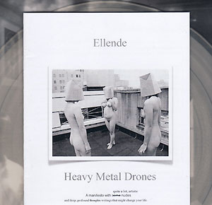 Price (incl. 19% VAT): €20.00 More Info" 10" + CD + 14p. booklet - Smeerlappen 2011New release by anonymous Japanese/South African duo. 300 copies, numbered" [La Scie Doree] "Hand-numbered edition of 300 copies edition set that features a clear 10” a CD and an accompanying art book/manifesto" https://ellende1.bandcamp.com/album/heavy-metal-drones |