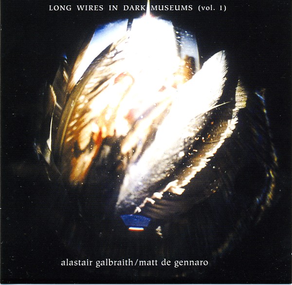 Price (incl. 19% VAT): €13.00 More Info"Long Wires in Dark Museums was recorded live in performance in total darkness at two concerts in New Zealand’s North Island. Long pieces of polished piano wire were strung across the venue, and music is made by bowing the wire with rosined hands while walking.The room is perhaps the most important instrument, as the sounds are delivered to the listener’s ears by the vibrating walls. De Gennaro: “It’s not the wires themselves that make the sound, but the wall, railing or window frames at their end to which its vibrations are communicated.” Galbraith: “The sound of the wires is the sound of the building”. The first song is wire with guitar loop, the second wire with Alastair’s intimate violin whimpers and the final song is both players on wires, making a pure drone that envelopes the whole room. The whole disc leaves a stamp that’s narcotic, not academic. Matt De Gennaro has studied art and sound acoustics and first experimented with wire music privately in his attic in the middle 90s. Alastair Galbraith is known for both his solo work and his tenure in the improvisational outfit A Handful of Dust." [label info] www.emperorjones.com |