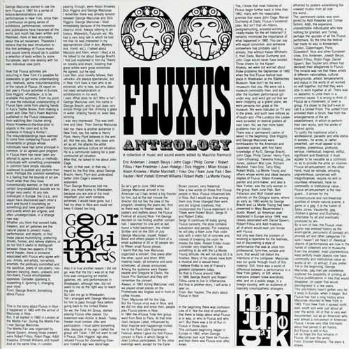 Format: LP Label & Cat.Number: Song Cycle Records CY997 Release Year: 2017 Note: a collection of various incredible soundworks 1956-1989 that could be labelled as part of the Fluxus movement, by: JOSEPH BEUYS, JOHN CAGE, LA MONTE YOUNG, NAM JUNE PAIK, PHILIP CORNER, YOKO ONO, EMMETT WILLIAMS, MILAN KNIZAK, WOLF VOSTELL, etc.. first released as LP in 1989, comes with replica of the original sleeve design featuring excerpts from various Fluxus writings