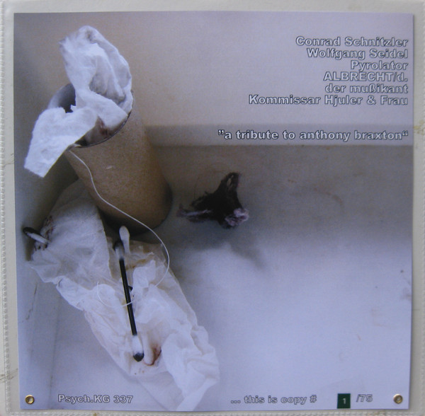 Format: LP Label & Cat.Number: Psych.KG - PSYCH.KG 337 Release Year: 2016 Note: this release in the FLUXUS series by Psych.KG contains rare material by CONRAD SCHNITZLER (collaborations with WOLFGANG SEIDEL and PYROLATOR), KOMMISSAR HJULERs legendary "Gerichtsverhandlung für Eimer und Gießkannen" piece, a very long piece by HJULER UND FRAU named "____ Br/l+T° n_/ " and one track by "ALBRECHT/d.&der mußikant"; about 47 min. of material, lim. 75 w. hand-clinched full-colour sleeve, numbered and signed
