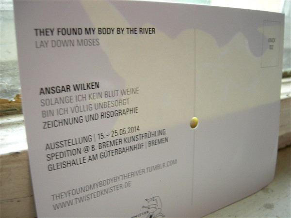 Format: 5inch flexi-disc Label & Cat.Number: Twisted Knister KNICK 002 Release Year: 2013 Note: "Solange ich kein Blut weine bin ich völlig unbesorgt" - a 2 min. piece by the ANSGAR WILKEN project, released on a most obscure format (a 5" flexi in the shape of a postcard, one side full colour); this appeared in conjunction with an exhibition at Spedition Bremen, May 2014 ; lim. 100 copies