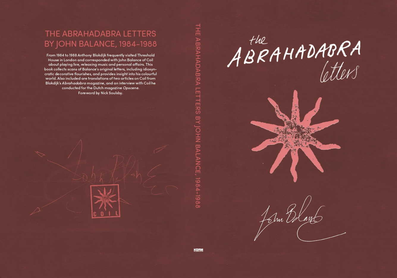 Price (incl. 19% VAT): €28.50 More InfoJohn Balance & Anthony BlokdijkThe Abrahadabra Letters 136 pages, hardcover, re-pressing 17 x 24 cm sized From 1984 to 1988 Anthony Blokdijk frequently visited Threshold House in London and corresponded with John Balance of Coil about playing live, releasing music and personal affairs. This book collects scans of Balance's original letters, including idiosyncratic decorative flourishes and provides insight into his colourful world. Also included two articles on Coil from Blokdijk's Abrahadabra magazine, and an interview with Coil he conducted for the Dutch magazine Opscene. Translations included. Foreword by Nick Soulsby. Design by Alfred Boland |