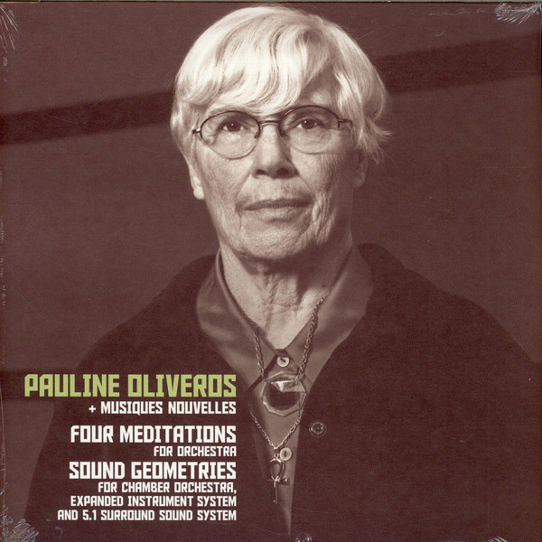 Price (incl. 19% VAT): €13.50 More Info"An- und abschwellende Dröhnwellen und mäandernde Haltetöne werden von Tropfen, Schraffuren, Impulsen und Kurzwellen akzentuiert. Dazu kommt elektronisches Glissandieren, Schimmern und Funkeln..." [Bad Alchemy about SOUND GEOMETRIES]"Pauline Oliveros surrounded by Belgian ensemble Musiques Nouvelles, performing 2 long pieces for orchestra. Sound Geometries for Chamber Orchestra, Expanded Instrument System and 5.1 Surround Sound System by Pauline Oliveros was premiered in Brussels. The 3 sections metaphors of the piece are intended to guide the players in their feelings and approaches to conducted, guided and improvisational music making to create differing atmospheres for each of the three sections. Players sounds are picked up during the performance by microphones, processed in one of ten geometrical patterns by the Oliveros designed Expanded Instrument System (EIS). to transform and move the player's sounds in space in the 5.1 surround sound system. Meditation for Orchestra asks the performers to listen then sound. Listen means to include all that is sounding and to find a space for each sound that is made. Pauline Oliveros and Ione are guests of Ensemble Musiques Nouvelle in this studio performance of Meditation." www.subrosa.net |