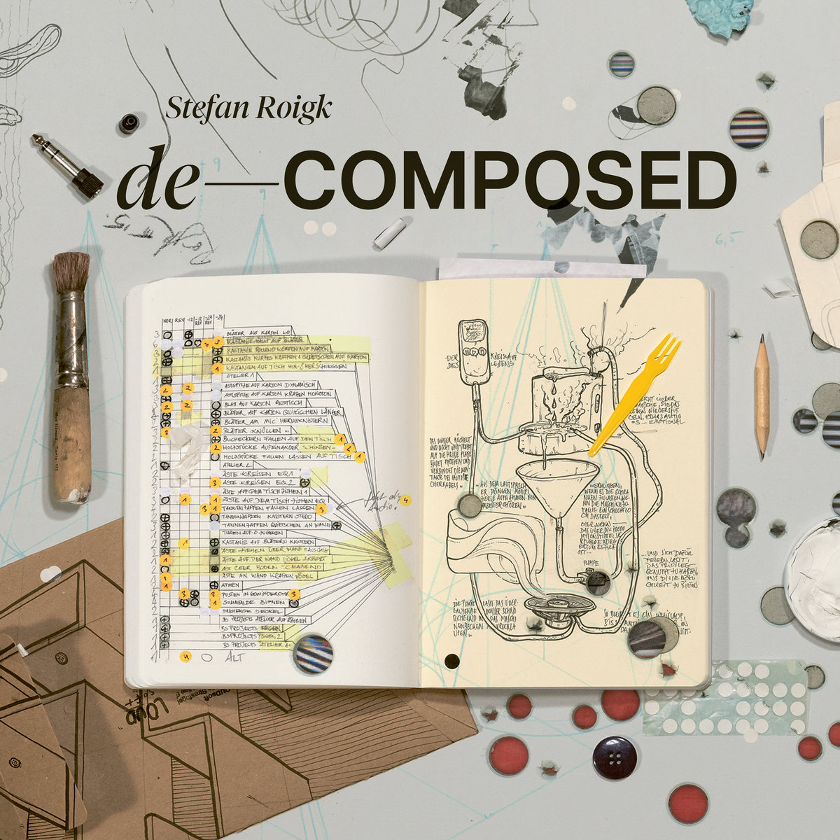 Price (incl. 19% VAT): €28.00 More Info„de—COMPOSED“ — New artist's book by Berlin-based sound artist Stefan Roigk. The catalog documents acousmatic compositions, sound installations, musical graphics and text-sound compositions of the years 2005 to 2023 on 144 pages and 2 Audio-CDs.A complex assemblage, composed of documentation photos, texts and drawings, becomes an interlocking whole in its dynamic flows and fields and animates the paper as a vibrantly structured visual composition. A piece of music for the eyes, in which the boundaries between documentation, draft and work become blurred in a surreal mesh of the concrete and fictional. Here, the reader generates their own individual temporal axis based on their speed of observation and focus on the optical elements, thus becoming a mixing board for a composition realized as a catalogue. Three text pieces give a deeper insight into Roigk's understanding of sound as material and the translation of sound events into other media. As an equivalent to the visual approach of the catalog and in order to adequately convey the sonic dimension of the artistic work, (sound) fragments of all the works covered in the catalog were transferred into a dynamic collage-like arrangement with Roigk's typical aesthetics and are included with the catalog as an independent listening experience in the form of two audio CDs. „Stefan Roigk, de—COMPOSED (Audio Extracts)“ is published in conjunction with the catalogue "Stefan Roigk, de—COMPOSED" / published 2023 by Errant Bodies Press, Berlin / ISBN 978-3-9823166-8-0 / for further information please visit : www.stefan-roigk.com / www.errantbodies.org / © 2023 Stefan Roigk + Errant Bodies Press / This Publication was supported by Stiftung Kunstfonds https://stefanroigk.bandcamp.com/album/de-composed-audio-extracts "In a plastic bag, we find the following: a softcover book, 21x26 centimetre, 144 pages, 2 A5 postcards and a double CD. All of this is by Stefan Roigk, a Berlin-based composer born in 1974. I mention that year because, much to my pleasant surprise, the first time his name popped up in Vital Weekly was in issue 109, which must have been around 1997, which started, also very funny, with "Can you believe that in today's digitalized world there are still existing people who start a cassette-label?" Over the years, I reviewed his various releases, and his language, German, is essential to him. However, unlike some of his previous works, these two CDs aren't all spoken word, which is excellent. More to enjoy if the language is a barrier. What I didn't know, or perhaps I wasn't as aware, is that Roigk is also a visual artist and that many of his music pieces come with installations, or vice versa. The book is a catalogue of these installation pieces, the oldest from around 2007. Even when these pages are stills and not the real thing (or, in the case of a DVD, a registration of the real thing), it gives an excellent overview of his work. Like his music, many installation pieces are also collages of everyday objects in a new context. Some pieces on these CDs have been released before, so one could say this is a greatest-hits package. The downside is that the order on the CD is different than in the book, so one goes back and forth, learning about the material used in these pieces. Roigk uses musique concrète techniques of superimposing elements, intricate cuts, montage and altering his sounds. Of course, over two hours of music is quite a stretch, but sitting back with the catalogue certainly works very well. I took away from it that Roigk creates a very coherent body of work in which music, visuals and text play a homogenous role." [FdW / Vital Weekly] |