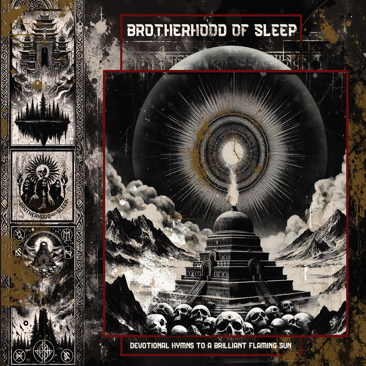 Price (incl. 19% VAT): €14.00 More InfoWinter-Light presents the debut album by Belgian artist Bart Piette's new project, 'Brotherhood Of Sleep'.'Devotional Hymns To A Brilliant Flaming Sun' is constructed of five Ritual Dark Ambient pieces employing powerful percussive elements and deep drones, traditional instruments, chants and invocations. Skilfully crafted tracks, draw the listener to a point of deep focus and guide them on to the next path of the journey, culminating in an auditory gaze into infinity. 'Energy directed through the opened mouths of the singing skulls, facilitated by mantra and multiplied several times by vocalisations through the mouths of other singing skulls, that are placed on stupas throughout the Temple.' Bart also records music as 'Dead Man's Hill' and has releases on Zazen Sounds, Black Mara and Noctivagant labels. Written and produced by Bart Piette Mastered by Ronald Mariën (Stratosphere) Cover artwork and design by Abby Helasdottir https://winter-light.bandcamp.com/album/devotional-hymns-to-a-brilliant-flaming-sun |