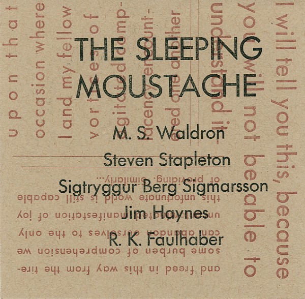 Price (incl. 19% VAT): €14.00 More InfoAkustischer Surrealismus in Reinform auf dieser aufwendige Ketten-Collaboration, Drones und Collagiertes zu gleichen Teilen, Sprachexperimente, Geräuschaftes, Weirdes, abenteuerlich und schön!Anhören und staunen ! „... Im fünfmaligen Wechsel von gut 10-minütigen mit 2- bis 3-minütigen Tracks jonglieren die Fünf mit den elektronischen Schatten von Nähmaschinen und Regenschirmen, wuchten nackte Eselskadaver auf Konzertflügel, klingen nach der Nachtschwester und lassen sich das Schamhaar neu friesieren [...].. Auch wenn sie das Pissoir nicht neu erfindet, ist sie doch Frucht einer langen Erfahrung aquis submersus.“ [Bad Alchemy #51] “....Each with a peculiar understanding of the audio arts, these five artists came to the proverbial table and thought it a good idea to collaborate. Given the predilection for the surreal and the sidereal that each of these five employ in their many audio and visual projects, those agendas oozed from the recordings that became known as The Sleeping Moustache. An epiphany of controlled disorder, a convulsion of beauty, a cascade of thought from delirious minds, The Sleeping Moustache is an exquisite manifestation of sound poetry scattered into a tortuous collage mired in an oblique melancholy. Magnetic tones extracted from the ether, mechanical sounds smeared into a lugubrious growls, horns trumpeting straight out of John's Book of Revelation, ululations sliced into information overload that Schwitters himself would be proud of. The Sleeping Moustache presents a psychically instable landscape, where dreams and nightmares wreak havoc upon the drudgery of daily life. The closest audible territory for The Sleeping Moustache might be the psychoactive constructions of Nurse With Wound's Homotopy To Marie, although the characters in this drama happened upon an entirely different map of that terrain. The artwork for the first edition of The Sleeping Moustache features five letterpress prints from each of the artists with an edition of 1700.” [from the label description] "You know it's gotta be an amazing record when we start a review by stating "we don't know where to begin with this record" and then we blather on and on for another 500 words pretty much demonstrating that while we may not where to begin, we certainly have a lot to say. And that totally applies to The Sleeping Moustache, the latest release from the enigmatic Helen Scarsdale Agency. The most well known of these five audio contortionists is Steven Stapleton who is the brains behind Nurse With Wound, who convolutedly reconstitute Surrealism, avant-garde aesthetics, and krautrock expressivity, resulting in some of the most profoundly brilliant and disturbing records we've ever heard. Sigtryggur Berg Sigmarsson is one of the drunken pilots of Stilluppsteypa, an Icelandic project of electro-absurdity capable of magnificent minimalism. M.S. Waldron is responsible for irr. app. (ext.), (an unwieldy moniker for sure) which has produced an amazing body of post-Surrealist expressivity in recent years. When he's not manning the fron counter here at Aquarius, Jim Haynes has developed a peculiar knack for rust-inflected dronescaping, and finally R.K. Faulhaber, who is the mystery man amongst the bunch, although we've been told his unpublished works offer a byzantine array of mutilated sonic collages. The album that these five produced is a weighty proposition to say the least, with detours a plenty within this mangled concoction of delirious dronescaping punctuated with glossalaic vocalizations. Delicate plinks and plonks sprinkled across sublime, gaping tones which transition to a convulsive beauty with mechanical spasms and nightmarish creakings. Throughout The Sleeping Moustache, ghostly reminders of each of the contributors' refined aesthetics emerge as a Gordon knot of convoluted logic, unsettling shifts between horror and comedy, psychological instability, and disquieting soundscapes. If you're even remotely a fan of Nurse With Wound or irr. app. (ext.) or Stilluppsteypa, this album is not just recommended... it's absolutely required." [Aquarius Records] |