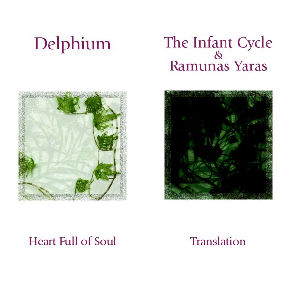 Price (incl. 19% VAT): €10.00 More InfoDie Wiederkehr des britischen, vor langer Zeit (DR-24) auch auf Drone gefeatureten Projekts DELPHIUM! "Heart full of Soul" besteht aus fünf überwiegend aggressiven "pulse'n'noise"-tracks, basierend auf Gitarrenklängen (das merkt man kaum), harsch und metallisch-mechanisch rhythmisiert, mit wie immer sehr düsterem Unterton...THE INFANT CYCLE dagegen arbeitete für die zweite mCDR mit RAMUNAS YARAS (aka ENDICHE VIS.SAT) zusammen, der Klarinett-Klänge beisteuerte; entstanden ist ein grossartiger, hitziger, fast flirrend-rhythmischer track, dronig-melancholische Zwischenspiele, sowie mysteriöse Klanglandschaften die auf verfremdeten Vogelstimmen, Radiokurzwellen & "feedback generators" bestehen... starke Kontraste auf einer hervorragenden Split-Veröffentlichung! Das ganze in schlankem Hochformat, ein sehr kurioses Cover, professionell gestaltet, lim. 100 ! "Heart Full of Soul," nearly 23 minutes, is one of Delphium's darkest and noisiest recordings to date. The very direct and engaging work features tracks ranging from droning dark ambient to distorted and expressive rhythmic beats. "Translation" is a 20-minute release consisting primarily of The Infant Cycle processing and supplementing avantgarde clarinet recordings by Ramunas Yaras. The resulting experimental (and somewhat rhythmic) pieces fall variously within the spectrum between ambient drone and noise. This release is presented as a pro-printed 2x3"CDr set, packaged in a special color folder sleeve, and limited to 100 copies. Delphium has been active since 1993, releasing numerous vinyl and CD releases on labels such as Drone, Moloko+, Hibou, and his own Aquese label. The Infant Cycle, active since 1992, has many releases on labels such as EE Tapes, Blade, Hands, and his own label, The Ceiling. Ramunas Yaras is a Lithuanian experimental composer and writer who is also known for his work in Endiche Vis.Sat and Magic Carpathians Project." [label info] |